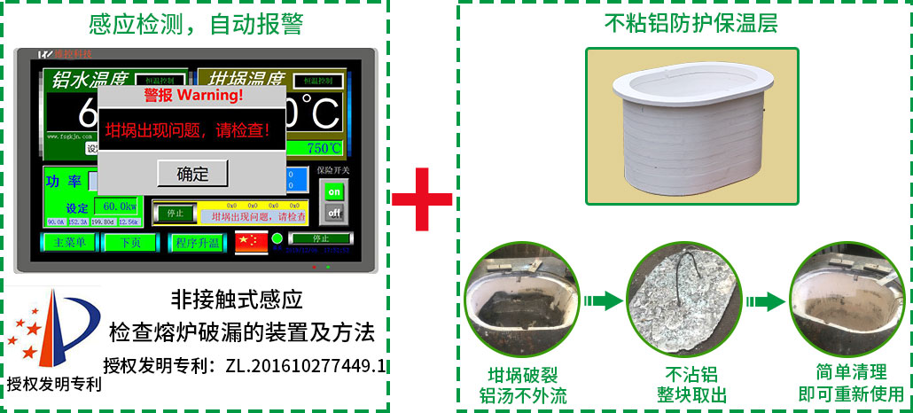 非接觸式感應(yīng)檢測(cè)漏鋁方式+不粘鋁防護(hù)保溫層